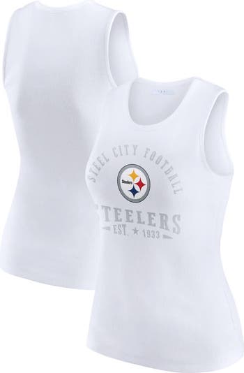 Women's WEAR by Erin Andrews White Pittsburgh Steelers Ribbed Graphic Tank Top