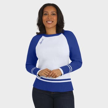 Women's WEAR by Erin Andrews White/Royal Los Angeles Rams Colorblock Raglan Sweater
