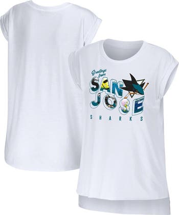 Women's WEAR by Erin Andrews White San Jose Sharks Greetings From Muscle T-Shirt