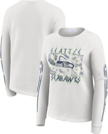 Women's WEAR by Erin Andrews White Seattle Seahawks Graphic Waffle Long-Sleeve T-Shirt