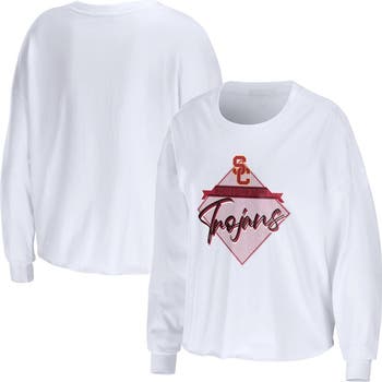 Women's WEAR by Erin Andrews White USC Trojans Diamond Long Sleeve Cropped T-Shirt