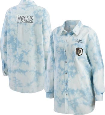 Women's WEAR by Erin Andrews White Vegas Golden Knights Oversized Tie-Dye Button-Up Denim Shirt