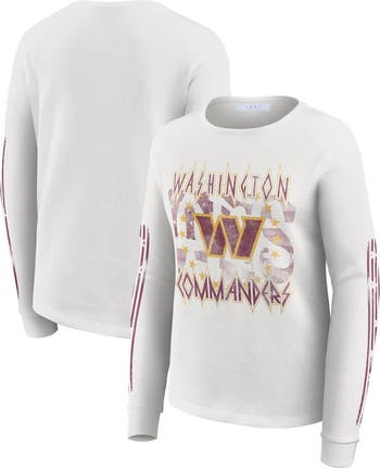 Women's WEAR by Erin Andrews White Washington Commanders Graphic Waffle Long-Sleeve T-Shirt