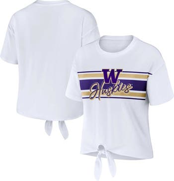 Women's WEAR by Erin Andrews White Washington Huskies Striped Front Knot Cropped T-Shirt