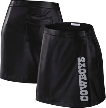 Put a fashionable spin on your gameday look with this Dallas Cowboys Wrap Skirt from WEAR by Erin Andrews. Part of the WEAR x Gracie Hunt collaboration, this skirt features a stylish faux-leather finish and elastic waistband for a comfortable fit. With Dallas Cowboys graphics vertically printed on the side, this piece is perfect for repping your favorite team in style.