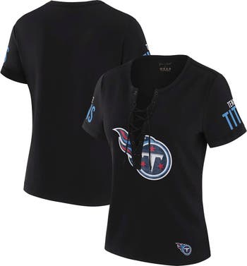 Women's WEAR by Erin Andrews x Gracie Hunt Black Tennessee Titans Draft Me Lace-Up T-Shirt