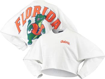 Women's White Florida Gators Raw Hem Cropped Spirit Jersey Long Sleeve T-Shirt