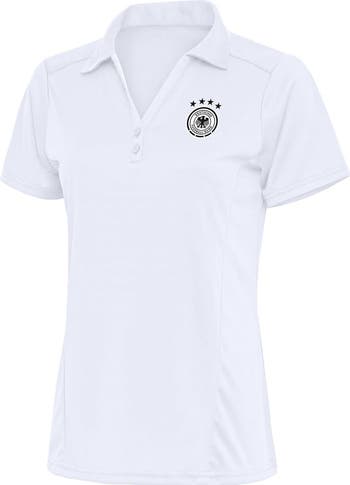 Celebrate the German National Team in style with the Women's White Germany National Team Statement Polo. Embroidered graphics proudly display your unwavering support for the team. Princess seams and self-fabric collar provide a flattering fit, while the open cuff adds casual sophistication. Durable polyester makes this polo perfect for cheering on the Germany National Team both on and off the field.