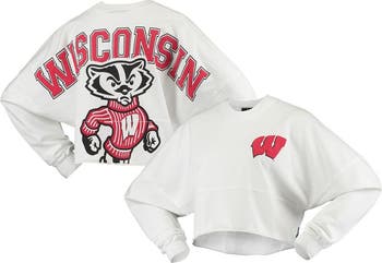 Women's White Wisconsin Badgers Raw Hem Cropped Spirit Jersey Long Sleeve T-Shirt