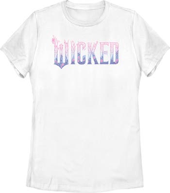 - Real style and friendship are truly unlimited with this new women's t-shirt that is perfect for whenever you're feeling a little defiant! Featuring the official Wicked logo displayed in purple and pink, adorned with dazzling flowers across the front.