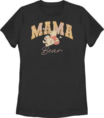 - Add a bit of magic to your mom's day with this stylish new women's t-shirt! Featuring the text: "Mama Bear" printed in college-themed and elegant lettering styles along with Winnie the Pooh sitting in the middle.