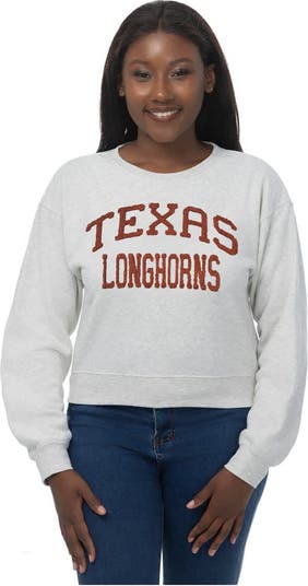 Show off your school spirit with this trendy Texas Longhorns Chenille Cropped Sweatshirt from ZooZatz. The fleece lining feels soft and keeps you extra warm, making this midweight pullover perfect for cooler game days. The embroidered team name on the front adds a touch of texture and dimension, ensuring your Texas Longhorns pride stands out in any crowd.