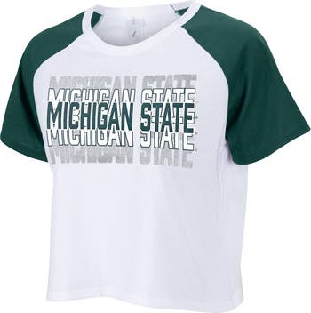 The Women's ZooZatz White Michigan State Spartans Colorblock Repeat Raglan Cropped T-shirt is the perfect way to show your support for the Michigan State Spartans. With its screen print graphics and cropped design, this shirt is both stylish and comfortable. Made from a blend of polyester and cotton, this shirt is perfect for game day or any day. Show your Michigan State Spartans pride with the Women's ZooZatz White Michigan State Spartans Colorblock Repeat Raglan Cropped T-shirt.