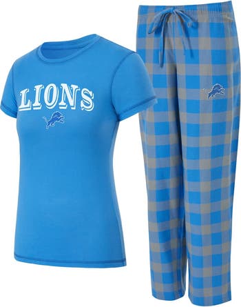 Women's Concepts Sport Blue/Gray Detroit Lions Avondale T-Shirt & Pants Flannel PJ Set