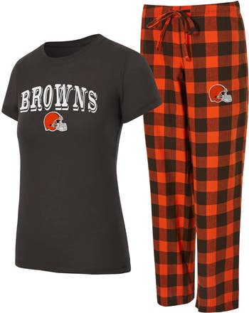 Women's Concepts Sport Brown/Orange Cleveland Browns Avondale T-Shirt & Pants Flannel PJ Set