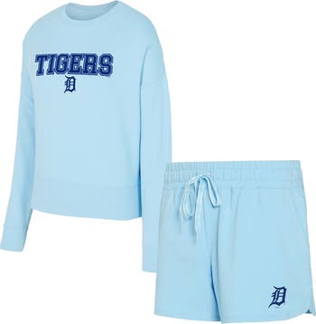 Women's Concepts Sport Light Blue Detroit Tigers Elevation Tri-Blend Long Sleeve T-Shirt & Shorts Set