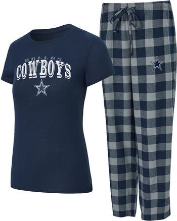 Rest and relax in ultimate comfort with this Dallas Cowboys Avondale T-Shirt & Pants Flannel PJ Set by Concepts Sport. Crafted from a soft blend of polyester and rayon, the T-shirt offers a lightweight and breathable feel. Brushed flannel pants feature a classic buffalo check pattern in team colors, bringing timeless style to your sleepwear collection.