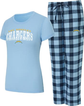 Women's Concepts Sport Powder Blue/Navy Los Angeles Chargers Avondale T-Shirt & Pants Flannel PJ Set
