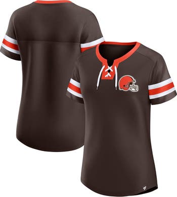 FANATICS Women's Fanatics  Brown Cleveland Browns Lace-Up Bling T-Shirt, Main, color, Brown