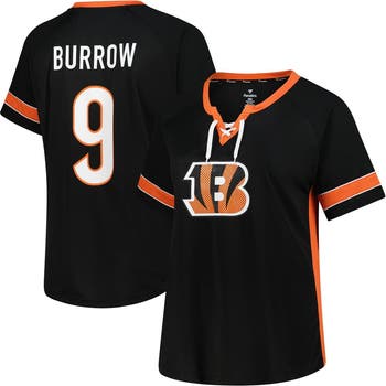 Show your Cincinnati Bengals pride with this stylish Joe Burrow Plus Size Name & Number Lace-Up T-Shirt from Fanatics. This lightweight and breathable tee features contrast-color side panels, collar, and neck trim for a pop of Cincinnati Bengals style. Meanwhile, the back proudly displays a heat-sealed rendition of Joe Burrow's name and number, so everyone will know who you're rooting for on game day.