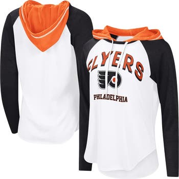 Add a touch of flair to your Philadelphia Flyers fandom with this G-III 4Her by Carl Banks VIP Raglan Long Sleeve Hoodie T-Shirt. This stylish top features contrast-color sleeves for a bold look that declares your Philadelphia Flyers fandom. Plus, the screen print team wordmark and logo at the chest leave no doubt who you'll be cheering for on game day.