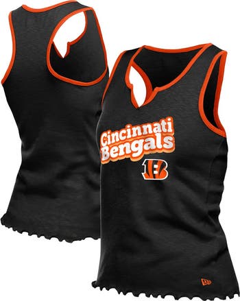 Refresh your game day wardrobe with this Cincinnati Bengals Lettuce Hem Notch Neck Tri-Blend Tank Top from New Era. Made from a super-soft tri-blend fabric, this tank top offers a comfortable, lived-in feel from the moment you put it on. The lettuce hem adds a touch of femininity and trendy style, while the screen-printed Cincinnati Bengals wordmark and logo at the chest boldly display your team pride.