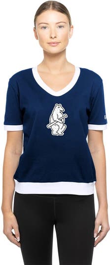 Head to the field in style and comfort with this Chicago Cubs Game Day Rhinestone V-Neck T-Shirt from New Era. Featuring a stylish contrast-color design and a flattering V-neck, this top effortlessly blends comfort and team spirit. The screen printed team logo with rhinestone details adds a touch of sparkle, making it a perfect choice for cheering on the Chicago Cubs or showing your team pride around town.