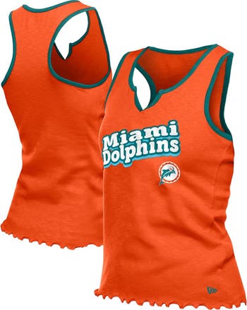 Women's New Era Orange Miami Dolphins Lettuce Hem Notch Neck Tri-Blend Tank Top