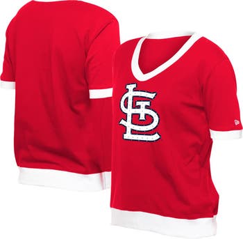 Head to the field in style and comfort with this St. Louis Cardinals Game Day Rhinestone V-Neck T-Shirt from New Era. Featuring a stylish contrast-color design and a flattering V-neck, this top effortlessly blends comfort and team spirit. The screen printed team logo with rhinestone details adds a touch of sparkle, making it a perfect choice for cheering on the St. Louis Cardinals or showing your team pride around town.