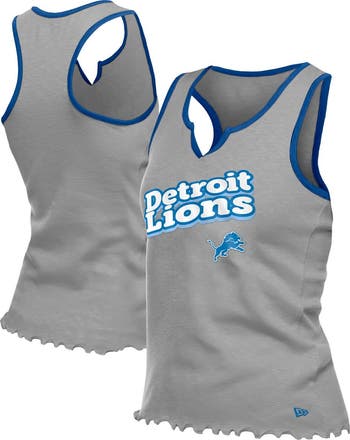Refresh your game day wardrobe with this Detroit Lions Lettuce Hem Notch Neck Tri-Blend Tank Top from New Era. Made from a super-soft tri-blend fabric, this tank top offers a comfortable, lived-in feel from the moment you put it on. The lettuce hem adds a touch of femininity and trendy style, while the screen-printed Detroit Lions wordmark and logo at the chest boldly display your team pride.