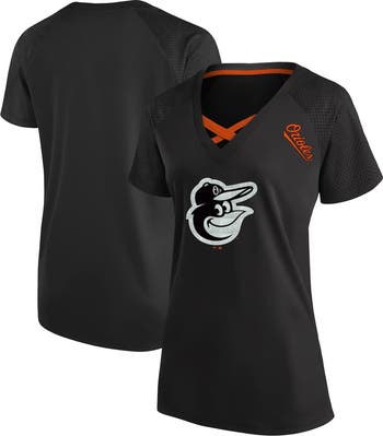 Add some sparkle to your Baltimore Orioles game day look with this Plus Size Glitter Raglan V-Neck T-Shirt from Profile. The sewn-in crisscross detail at the neck adds a touch of feminine flair, while the mesh sleeves enhance breathability. Plus, the screen-printed team graphic on the front with glitter detail lets you showcase your Baltimore Orioles spirit in a fun and fashionable way.