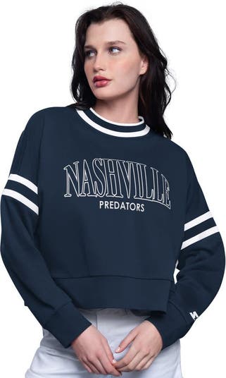 Rep your favorite team with this Nashville Predators Power Play Cropped Pullover Sweatshirt from Starter. This stylish pullover features a trendy cropped fit and stripes on the sleeves for a bold look. With a rib-knit collar, cuffs and hem, this midweight Nashville Predators sweatshirt provides a comfortable and secure fit that moves with you.