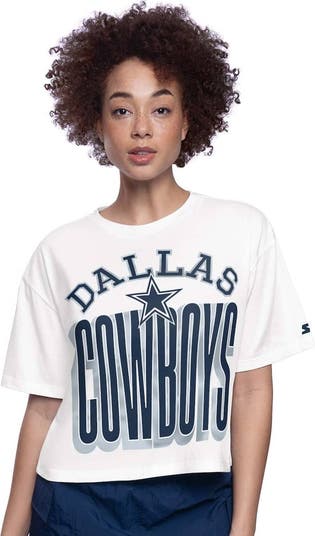 Women's Starter White Dallas Cowboys Throwback Play the Ball Boxy Cropped T-Shirt