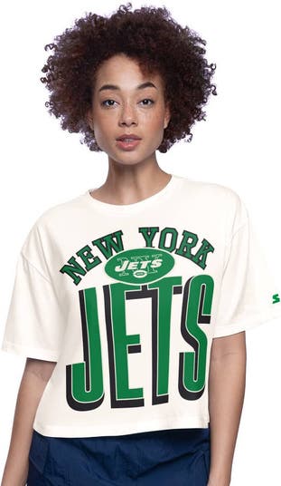 Women's Starter White New York Jets Throwback Play the Ball Boxy Cropped T-Shirt