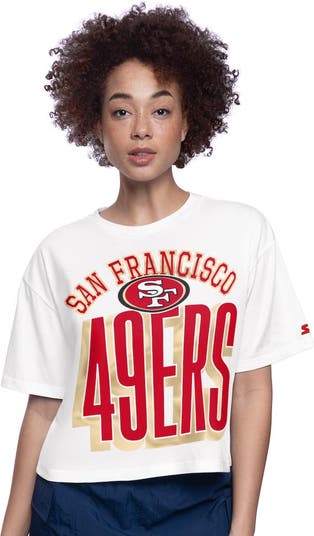 Women's Starter White San Francisco 49ers Play the Ball Boxy Cropped T-Shirt
