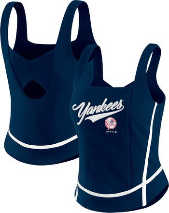 This New York Yankees Square Neck Tank Top from WEAR by Erin Andrews adds a fashionable touch to your game day look. The stylized wordmark and logo printed across the chest let everyone know you're a true New York Yankees fan. Plus, the square neck and cutout at the mid-back add a touch of style, making this tank top perfect for game day or any casual outing.