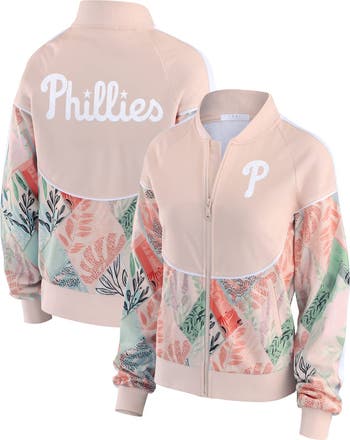 Hit every Philadelphia Phillies game in style with this WEAR by Erin Andrews Raglan Full-Zip Track Jacket. This stylish track jacket features raglan sleeves for a full range of motion, while the floral fabric on the bottom sleeves and torso adds a touch of femininity. With embroidered Philadelphia Phillies logos on the chest and back, you'll be able to show off your team pride in style.