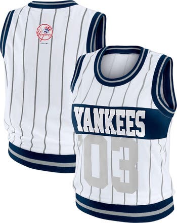 Step up your game day style with this New York Yankees Sporty Tank Top from WEAR by Erin Andrews. The sublimated pinstripe design adds a touch of classic baseball style, while the slightly oversized fit with a tighter waistband creates a flattering silhouette. Plus, the fabric applique team wordmark at the chest lets everyone know you're a proud New York Yankees fan.