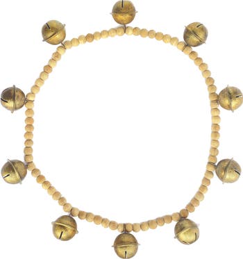 - Made of natural wood beads and metal bells, this garland is a blend of organic texture and metallic sheen