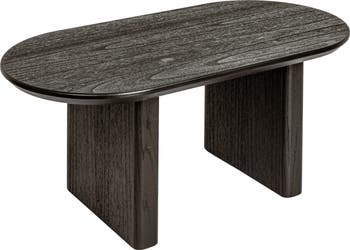 - A black coffee table that captivates with oval top and substantial legs