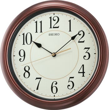 The 13" Numbered Wooden Finish Wall Clock is a round wall clock which brings warmth and sophistication to the home as well as office space. Classically designed, it features a brown case with a wooden grain finish, full dial LumiBrite and a quiet sweep second hand. Powered by 1 AA battery (included). Overall dimensions: 12.7 X 12.7 X 1.7 inches. All Seiko clocks are equipped with quartz movement making it the most accurate at time keeping.