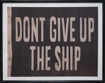 - Add some history and patriotism to the walls with this vintage flag wood framed glass wall decor that features a black and white reproduction of the "Don't Give Up the Ship" flag