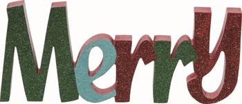 - Elevate your holiday decor with the 11inch Multicolor Merry Glitz Decor made from durable MDF wood, featuring vibrant red letters perfect for tabletop display during the Christmas season.