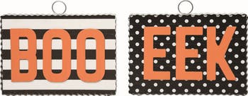 Enhance your Halloween decor with the Transpac Wood 9.5 in Multicolor Halloween Corrugated Frame Decor Set of 2 This charming set features decorative letters and words that add a festive touch to your indoor space Each frame measures 8 inches in height and 9.5 inches in length making them perfect for tabletops or wall displays Crafted from durable MDF wood these frames are designed for easy care simply spot or wipe clean to maintain their vibrant colors Ideal for celebrating the Halloween season these multicolor frames will bring joy and excitement to your home decor