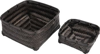 wood & Water Hyacinth Baskets, Black, Set of 2
