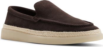 Woven raffia trim adds a hint of earthy style to this distinguished suede loafer grounded by comfort cushioning.