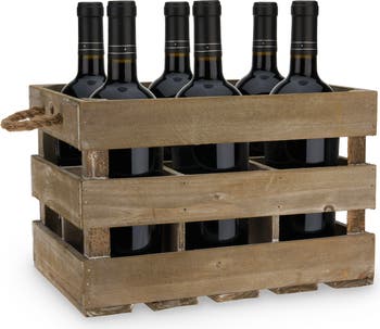 Carefully constructed from fir wood with rope handles for easy, comfortable conveyance, our lovely wooden crate is inspired by simple farmstead craftsmanship. Accommodating six of most any variety of bottle, here is a beautiful way to keep your drinks in order.