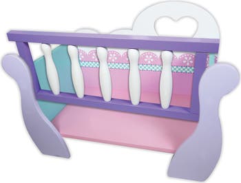 - PINK-PURPLE-WHITE DESIGN: Bright, playful colors of pink, purple, and white bring charm and warmth to any play space. This sweet wooden cradle blends classic style with cheerful hues that inspire joyful play.