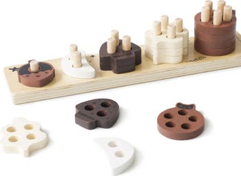 The Count + Stack Toy is a charming, hands-on way for toddlers to explore early math, motor skills, and problem-solving through play. Each beautifully crafted wooden piece is designed with a specific number of holes to fit onto the matching posts—one acorn, two moons, three mushrooms, four leaves, and five ladybugs. This clever design reinforces number recognition and counting while encouraging sorting, stacking, and imaginative play. Made from high-quality rubberwood with a child-safe, nontoxic finish, this Montessori-inspired toy is safe, eco-friendly, and built to last. The smooth wooden pieces are perfect for little hands to grasp, sort, and arrange, strengthening fine motor skills, hand-eye coordination, and spatial reasoning. Packaged in a keepsake-quality box, it makes a thoughtful and lasting gift for toddlers or preschoolers, perfect for birthdays, holidays, or baby showers. A classic educational toy designed for fun, learning, and years of play.