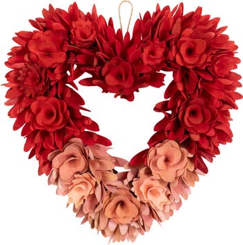 This red and pink wood curl wreath is a showy heart decoration that inspires romance and delight. Hang this 14” wooden flower wreath in your entryway, over a dining table or fireplace for Valentine’s Day or a colorful accent any day of the year. As a sustainable alternative to fresh flowers, a wooden rose wreath will remain bright and attractive for many more Valentine Day celebrations. Product Features: Unlit Wooden rose floral wreath Comes in a heart-shaped design Adorned with red and pink wooden flowers Comes ready to hang with jute twine cord Flat foam backing No assembly required - wreath comes in 1 piece Recommended for indoor use - if using outdoors place under a covered area Dimensions: 14"H x 13"W x 3"D Material(s): wood/foam